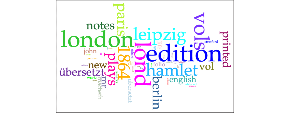 This article started with a simple question: what can we learn about a nineteenth-century bibliography that lists publications about Shakespeare using an “out-of-the-box” text analysis tool, that is, Voyant Tools? As I started undertaking this research, additional questions emerged: can this be used with pre-existing digital texts, or would I have to transcribe the volume by hand or run my own optical character recognition model? Can we fruitfully apply text analysis to a book that contains multiple languages? Is there a value in applying text analysis to a bibliography, that is, a book that was not meant to be read from front to back?