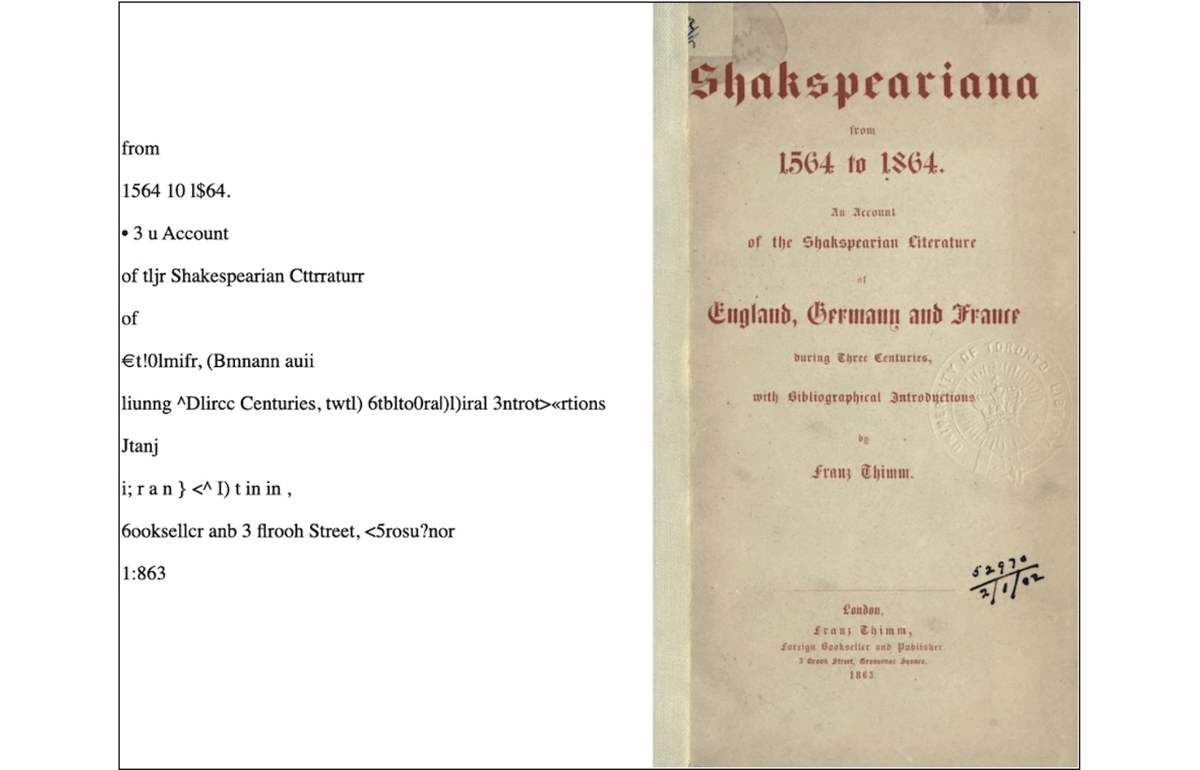 Online texts of Thimm’s Shakspeariana and optical character recognition